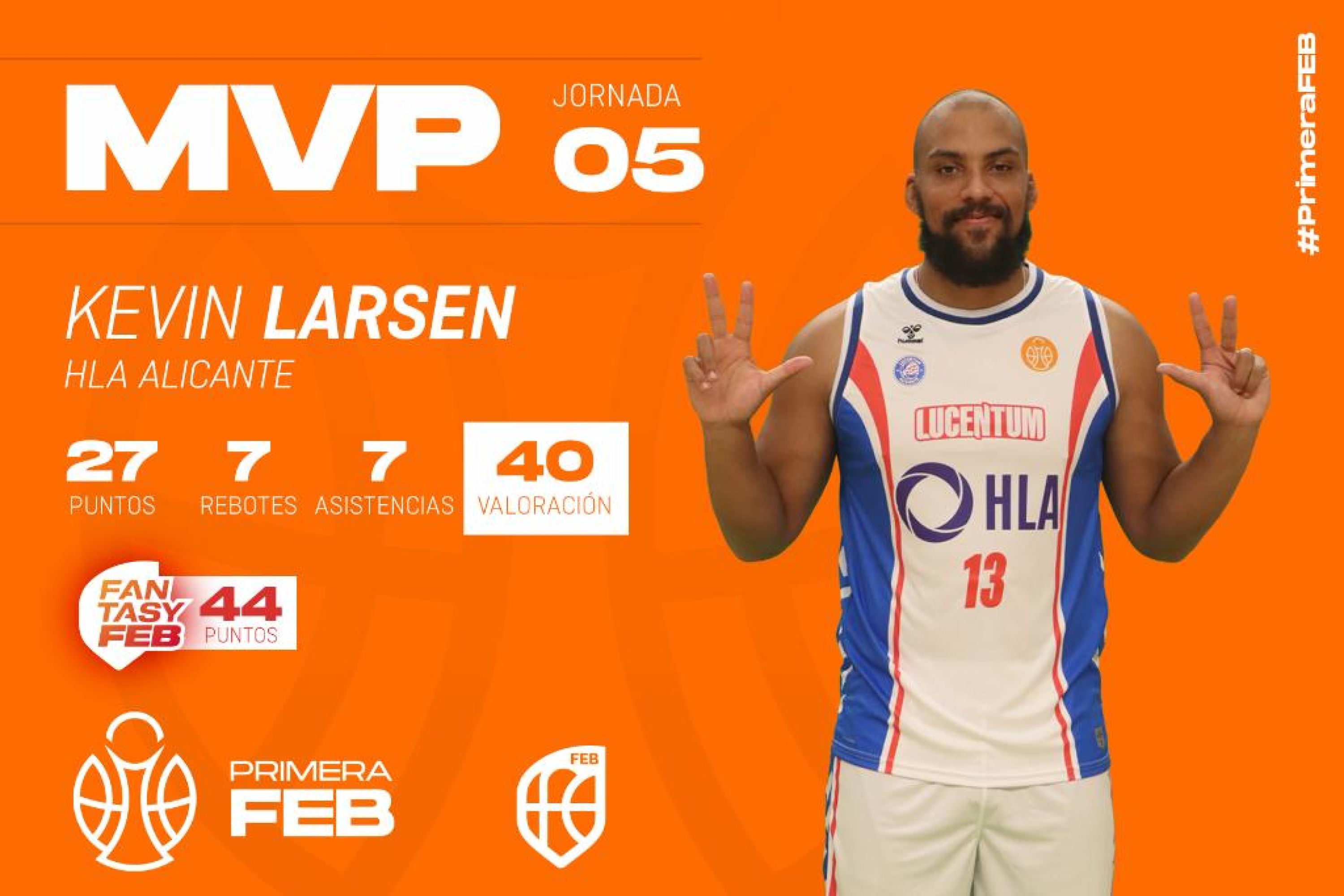 Alcanzó los 40 tantos de valoración y con ellos guio la tercera victoria de la temporada de un HLA Alicante que adquiere madurez deportiva de la mano de un Kevin Larsen dispuesto a marcar diferencia. Todo un clásico ya de una competición en la que cumple este curso su octava temporada a la búsqueda de nuevas metas desde una de las plazas con mayor solera de la Liga.